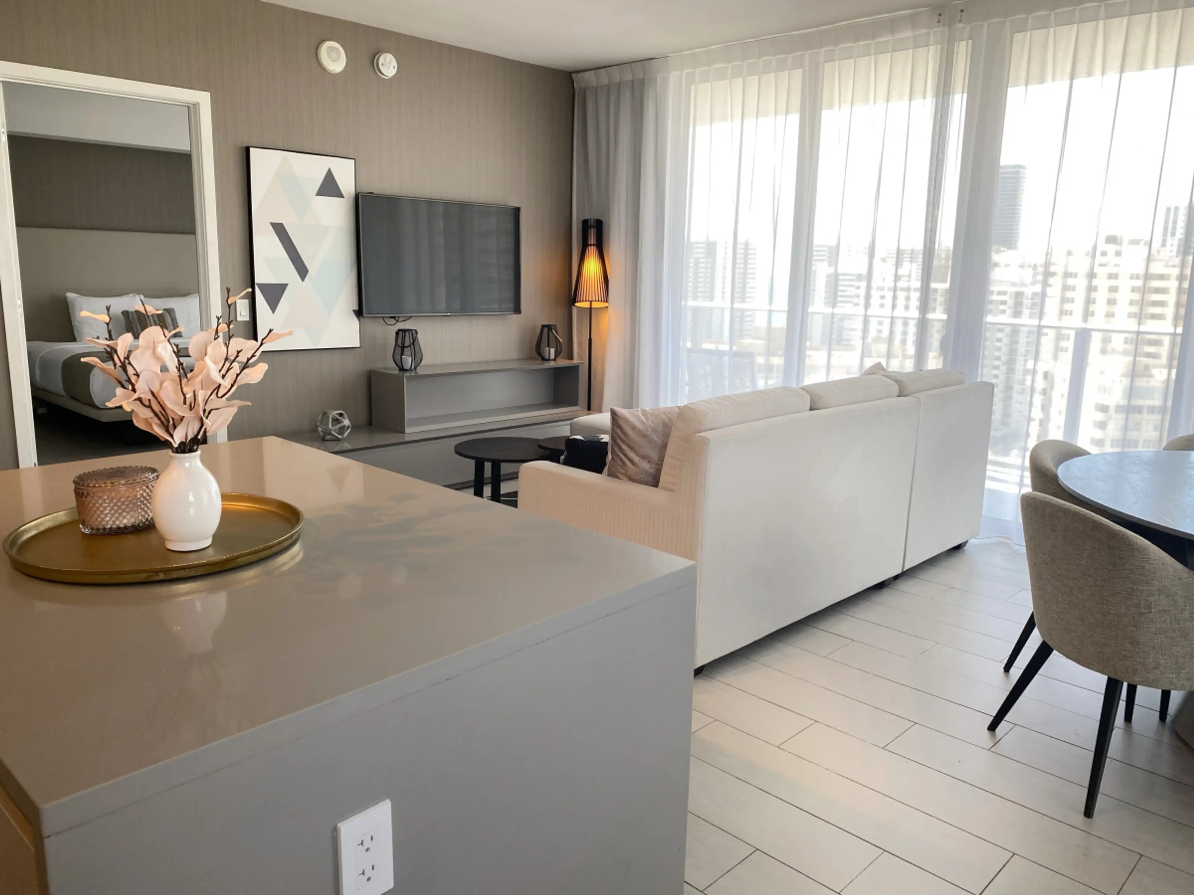 Our family had a great time at the condo. Everything was clean and modern, the unit well stocked and the staff friendly. Only disappointment was that the building was actually across a busy street and a decent walk from the beach